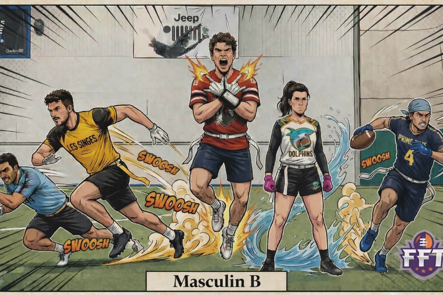 La partie entre Flag Hunters et Les p’tites vites a offert un affrontement intense. Dès le début, l’attaque de Flag Hunters s’est démarquée avec plusieurs passes complétées menant à des gains importants. Leur quart a su connecter efficacement avec ses receveurs, notamment sur des jeux de plus de 10 verges qui ont permis d’ouvrir le pointage. Du côté de Les p’tites vites, quelques belles réceptions en zone courte ont permis de garder le duel serré, incluant un touché bien exécuté après une séquence disciplinée. Défensivement, Flag Hunters ont réussi des arrêts clés, dont une passe rabattue cruciale. Malgré les efforts de Les p’tites vites, Flag Hunters ont maintenu leur avance grâce à une attaque constante et opportuniste qu’ils leur ont permis de remporter cette partie.